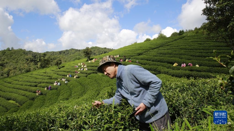 臺(tái)灣茶商黃進(jìn)傳在云南普洱采茶(資料照片)。新華社發(fā)