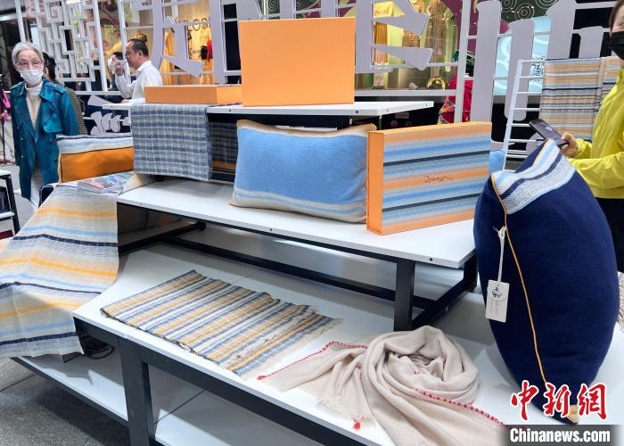 在另一側(cè)展臺(tái)上,陳列著由氆氌制成的披肩、圍巾、蓋毯等物?!懊饋碛峙从周洝薄皣砼渖妹?,也很好搭衣服”……前來參加“日喀則市及五縣‘五五’消費(fèi)展”的上海民眾,向氆氌制品投去好奇又欣賞的目光,忍不住伸手撫摸。