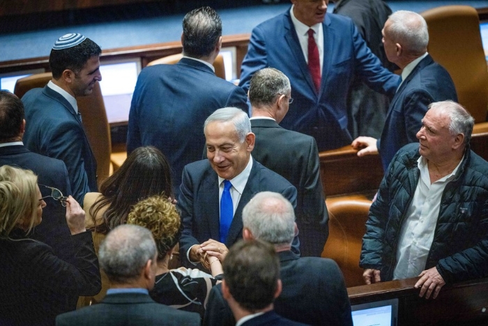 2022年12月29日,內(nèi)塔尼亞胡(中)在耶路撒冷出席以色列議會會議。新華社/基尼圖片社