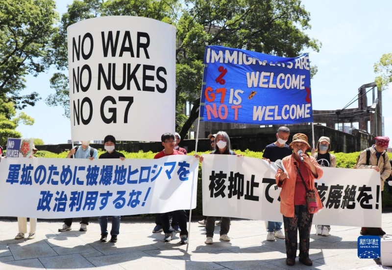 “不做戰(zhàn)爭(zhēng)幫兇”“不要G7”……14日,200多名日本民眾舉著各式標(biāo)語,在廣島和平紀(jì)念公園原子彈轟炸遺址舉行集會(huì),強(qiáng)烈抗議七國(guó)集團(tuán)(G7)峰會(huì)將在廣島召開。