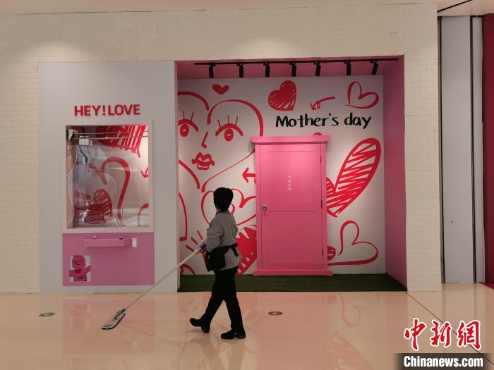 一位女士觀看鄭州一商場(chǎng)的母親節(jié)主題展陳?!№n章云 攝