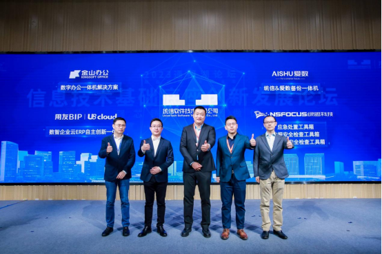 統(tǒng)信軟件從誕生的第一天起,就致力于推動中國信息產(chǎn)業(yè)從“單打獨斗”向“握指成拳”進化。本次峰會現(xiàn)場,統(tǒng)信軟件攜手、用友網(wǎng)絡、金山辦公、綠盟科技、愛數(shù)共同發(fā)布統(tǒng)信UOS生態(tài)伙伴一體機,數(shù)字基礎(chǔ)設施從“各自為戰(zhàn)”走向“一體升級”。