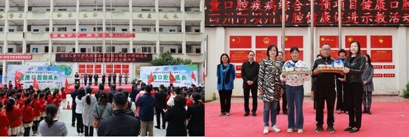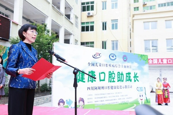四川阿壩州口腔健康促進(jìn)示教活動(dòng)啟動(dòng)儀式、中華口腔醫(yī)學(xué)會(huì)陳銘常務(wù)副秘書(shū)長(zhǎng)、四川省疾控中心吳先萍主任出席儀式并向馬爾康市第二小學(xué)贈(zèng)送口腔健康教育材料