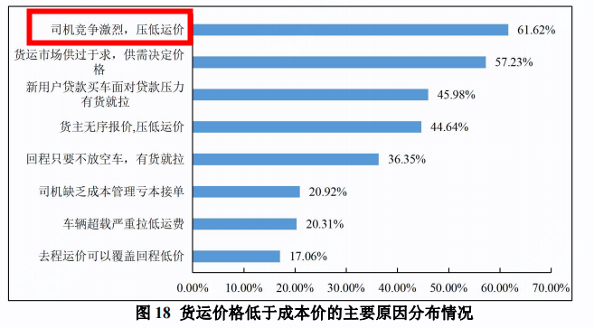 此外,雖然40%左右的貨車(chē)司機(jī)反映存在貨主和中介壓價(jià)問(wèn)題,但是根本原因仍然是市場(chǎng)供過(guò)于求導(dǎo)致價(jià)格下降。