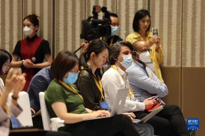 5月16日,中國-中亞峰會新聞中心舉行首場吹風會,邀請外交部歐亞司、文旅部國際交流與合作局、中國貿(mào)促會國際聯(lián)絡(luò)部有關(guān)負責人介紹峰會情況并回答記者提問。這是記者在現(xiàn)場提問。新華社記者 徐子鑒 攝