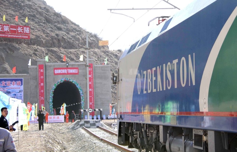 中鐵隧道集團承擔的烏茲別克斯坦安格連-帕普鐵路卡姆奇克隧道全隧貫通(2016年2月27日攝)。新華社記者 沙達提 攝
