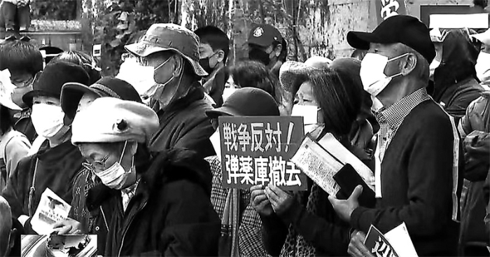 一些沖繩民眾舉行集會,反對日本政府擴張軍備。資料圖片