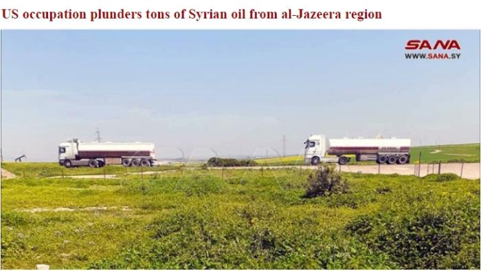 ·4月22日,美國在敘利亞非法駐軍使用34輛油罐車,滿載從敘利亞東北部盜運的石油資源,通過馬哈茂迪非法過境點前往伊拉克。