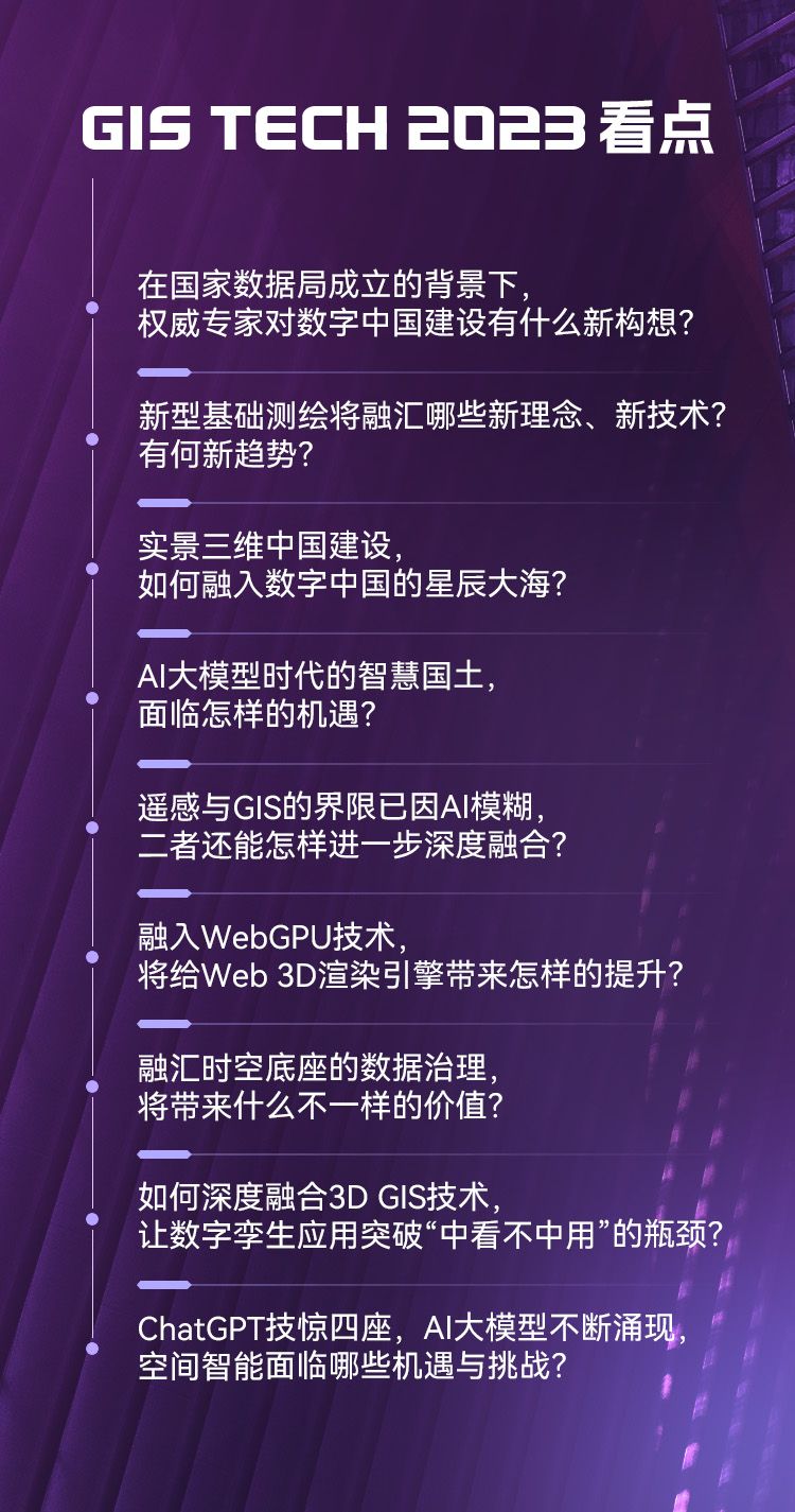 2023年6月27-28日,北京國家會議中心,2023地理信息軟件技術(shù)大會(2023 Geospatial Information Software Technology Conference,簡稱GIS TECH 2023),將以“空間智能 因融至慧”為主題,解析空間智能的技術(shù)內(nèi)涵,展示其廣闊應(yīng)用前景。
