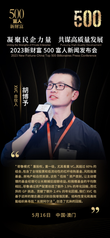XVC合伙人胡博予則分享了《如何用“耶魯模式”配置資產(chǎn)來(lái)實(shí)現(xiàn)超長(zhǎng)期超額收益》,他總結(jié)道,“耶魯模式”重股權(quán),重一級(jí),尤其看重VC。其超過(guò)60%的組合,包含了全球股票和低流動(dòng)性的杠桿收購(gòu)基金、風(fēng)險(xiǎn)投資基金、房地產(chǎn)和自然資源,這些“低效”資產(chǎn)類別,讓主動(dòng)管理的基金經(jīng)理可以長(zhǎng)期捕捉超額收益。和捐贈(zèng)基金的平均數(shù)相比,耶魯通過(guò)資產(chǎn)配置創(chuàng)造了額外1.9%的年化回報(bào),而優(yōu)異的GP挑選,貢獻(xiàn)了額外2.4%的年化回報(bào)。XVC也基于這樣的理念通過(guò)識(shí)別自我增強(qiáng)因素、結(jié)構(gòu)性變化和高效能組織來(lái)尋找“長(zhǎng)期阿爾法”,創(chuàng)造了優(yōu)異的回報(bào)。