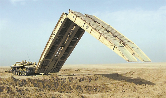 此外,也有部分國(guó)家通過(guò)購(gòu)買和引進(jìn)其他國(guó)家架橋先進(jìn)技術(shù)來(lái)增強(qiáng)通載能力。例如,印度陸軍曾接收了一批俄羅斯采用T-72主戰(zhàn)坦克底盤研制的架橋坦克BLT,它最大的特點(diǎn)是帶有2個(gè)“剪”式橋,可以保證戰(zhàn)車通過(guò)較寬的水障礙或旱地障壕。韓國(guó)裝備的架橋坦克是在其K1主戰(zhàn)坦克底盤上研制的,但坦克上安裝的架設(shè)裝置和“剪”式橋均由英國(guó)維克斯防務(wù)系統(tǒng)公司提供,首輛樣車由英國(guó)研制,之后才陸續(xù)在韓國(guó)生產(chǎn)。