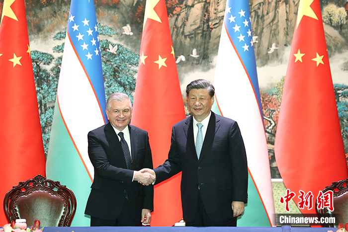 會談后,兩國元首簽署了《中華人民共和國和烏茲別克斯坦共和國聯(lián)合聲明》,通過了《中華人民共和國和烏茲別克斯坦共和國新時代全面戰(zhàn)略伙伴關(guān)系發(fā)展規(guī)劃(2023—2027)》,共同見證簽署優(yōu)先投資項(xiàng)目、減貧、農(nóng)產(chǎn)品貿(mào)易、檢驗(yàn)檢疫、地方合作等領(lǐng)域多項(xiàng)雙邊合作文件。