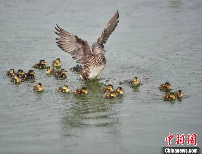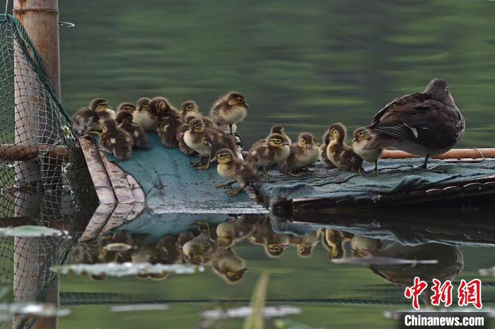 中新網(wǎng)杭州5月18日電 (王題題)18日,記者從浙江杭州西湖鴛鴦護衛(wèi)隊獲悉,杭州西湖里的第11窩小鴛鴦于17日出生,共計25只,刷新近七年來杭州西湖小鴛鴦單窩出生量最多的紀錄。