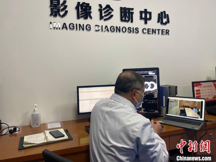 圖為一海島醫(yī)院內(nèi)醫(yī)生通過互聯(lián)網(wǎng)與上級醫(yī)院進行影像診斷交流?!≈炝杞?攝
