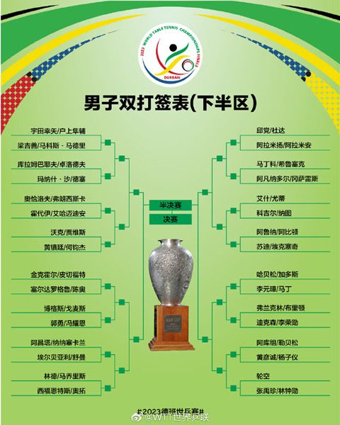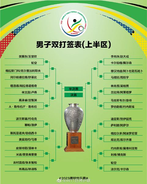 2023德班世乒賽男單具體抽簽結(jié)果: