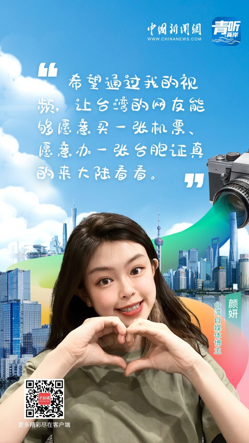 “透過(guò)我的視頻,他們(臺(tái)灣網(wǎng)友)可能會(huì)更想了解大陸一點(diǎn)點(diǎn)。”顏妍還特別提到,希望能通過(guò)自己的視頻,能讓臺(tái)灣的網(wǎng)友愿意買一張機(jī)票、愿意辦一張臺(tái)胞證真的來(lái)大陸看一看,而這需要時(shí)間慢慢地磨合和推進(jìn)。
