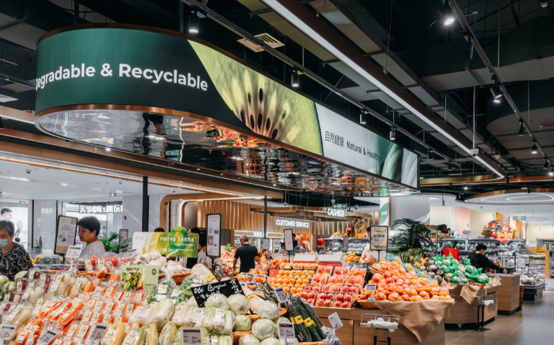 Olé低碳實(shí)驗(yàn)店推行聚乳酸PLA材質(zhì)及紙漿制作的一次性餐具、共聚丙烯PP購(gòu)物籃、全生物降解連卷袋等100%可降解物料,并且計(jì)劃逐步減少塑料在門(mén)店的使用。據(jù)相關(guān)負(fù)責(zé)人介紹,Olé已在全國(guó)線下26家門(mén)店取消一次性可降解購(gòu)物袋,推出由塑料回收瓶制成的RPET材料環(huán)保袋以及牛皮紙、杜邦紙、亞麻等多款環(huán)保購(gòu)物袋供顧客挑選,對(duì)自備袋購(gòu)物的顧客給予100積分獎(jiǎng)勵(lì),多環(huán)節(jié)鼓勵(lì)顧客“無(wú)塑消費(fèi)”,實(shí)現(xiàn)綠色環(huán)保的共同目標(biāo)。