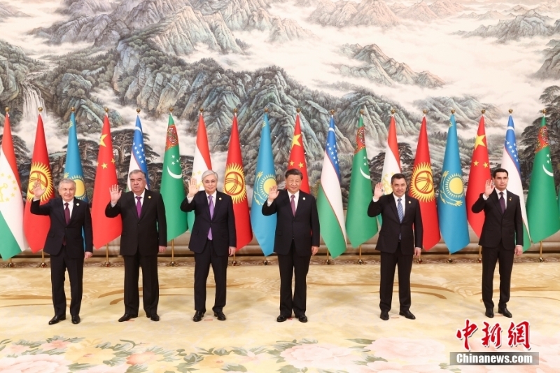 5月19日上午,中國國家主席習(xí)近平在陜西省西安市主持首屆中國—中亞峰會并發(fā)表題為《攜手建設(shè)守望相助、共同發(fā)展、普遍安全、世代友好的中國—中亞命運共同體》的主旨講話。哈薩克斯坦總統(tǒng)托卡耶夫、吉爾吉斯斯坦總統(tǒng)扎帕羅夫、塔吉克斯坦總統(tǒng)拉赫蒙、土庫曼斯坦總統(tǒng)別爾德穆哈梅多夫、烏茲別克斯坦總統(tǒng)米爾濟約耶夫出席。中新社記者 盛佳鵬 攝