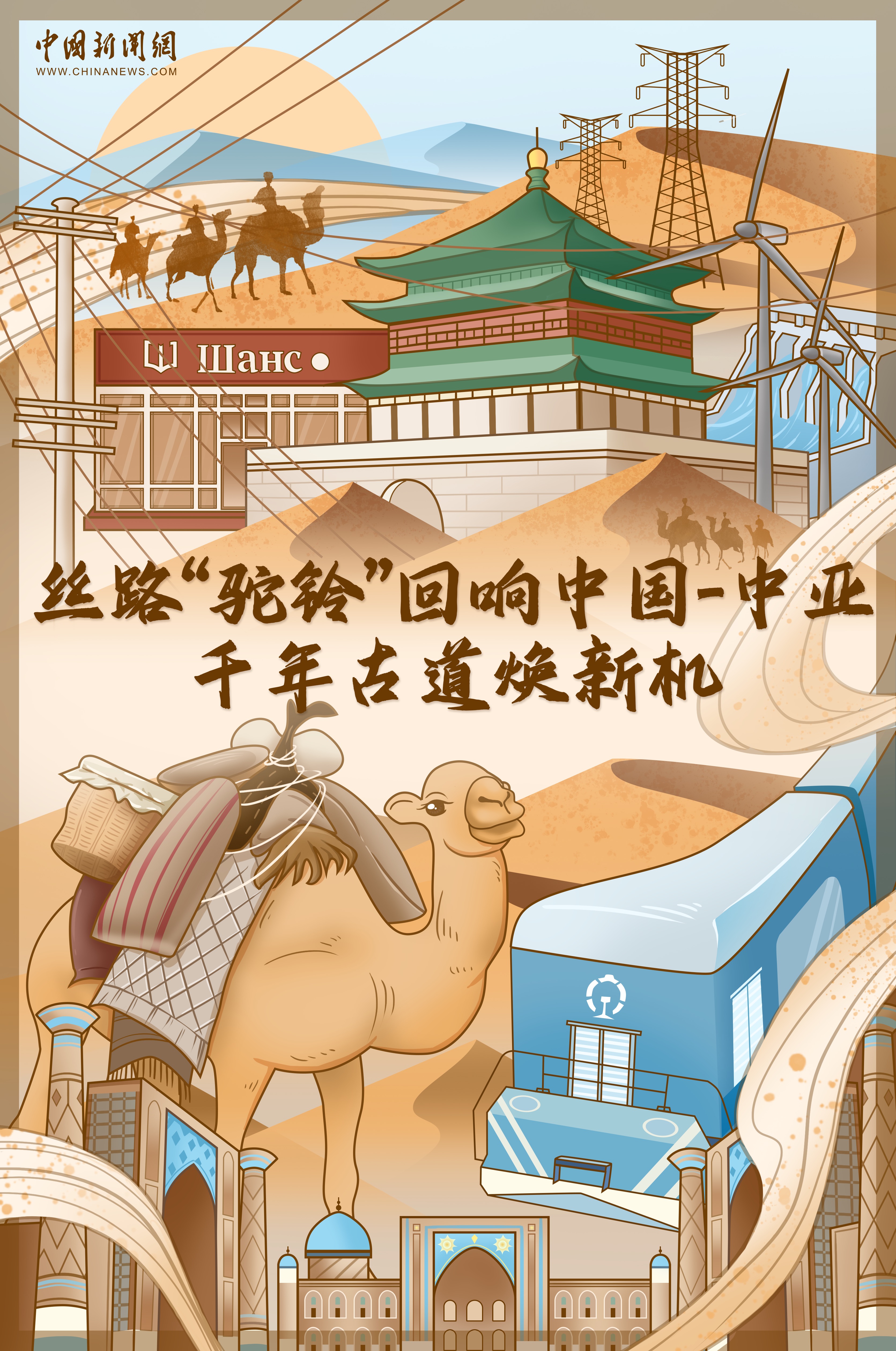 古今輝映,絲路“駝鈴”,綿延不息,越發(fā)緊密地聯(lián)結著沿線國家,造福當?shù)孛癖?。其背后,是中國同中亞國家始終秉持相互尊重、睦鄰友好、同舟共濟,攜手推動絲綢之路全面復興,傾力打造面向未來的深度合作。