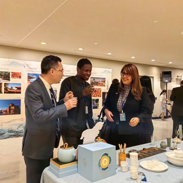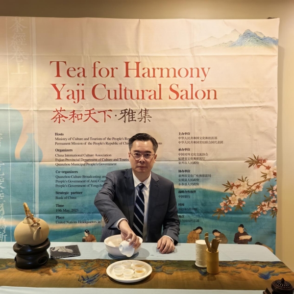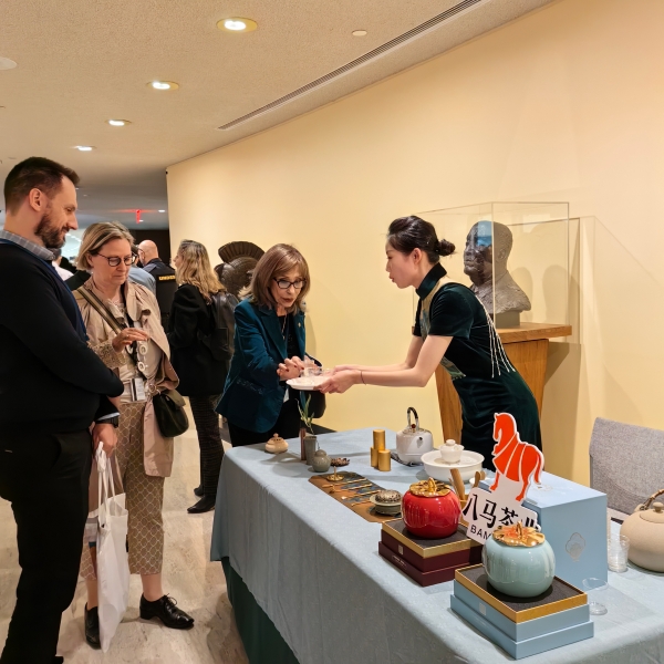 5月19日,中國常駐聯(lián)合國代表團協(xié)同中國文化旅游部及泉州市人民政府在聯(lián)合國總部舉辦“國際茶日”系列慶祝活動。八馬茶業(yè)董事長王文禮作為鐵觀音第十三代傳人、國家級非遺鐵觀音技藝代表性傳承人,受邀出席本次活動,攜明星產品賽珍珠鐵觀音和東湖之光系列亮相,向來自巴基斯坦、新加坡、哈薩克斯坦、葡萄牙、比利時、匈牙利、希臘、阿根廷、南非等20多國常駐代表展示豐富多彩的中國茶文化。