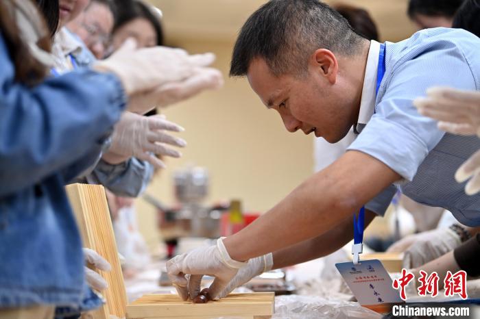 5月23日,由蘭州大學(xué)港澳臺事務(wù)辦公室主辦、蘭州大學(xué)基礎(chǔ)醫(yī)學(xué)院承辦的“中華優(yōu)秀傳統(tǒng)文化心理學(xué)研習(xí)營”在甘肅蘭州啟動。圖為來自澳門大學(xué)和蘭州大學(xué)的師生體驗傳統(tǒng)手工山楂丸制作。中新社記者 九美旦增 攝