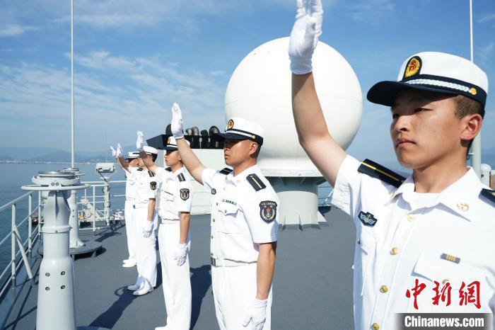 海軍學(xué)員和官兵揮手示意。 鄭天池 攝