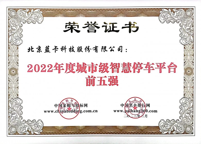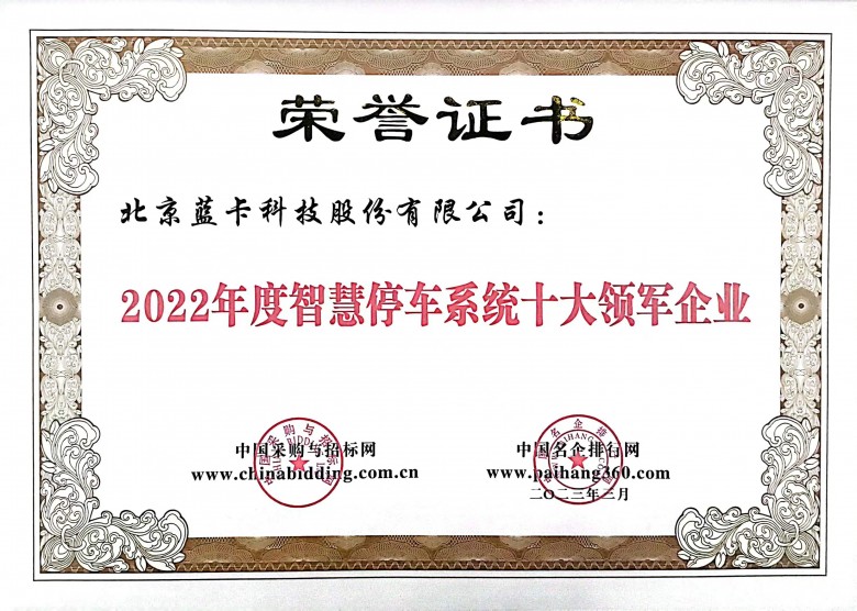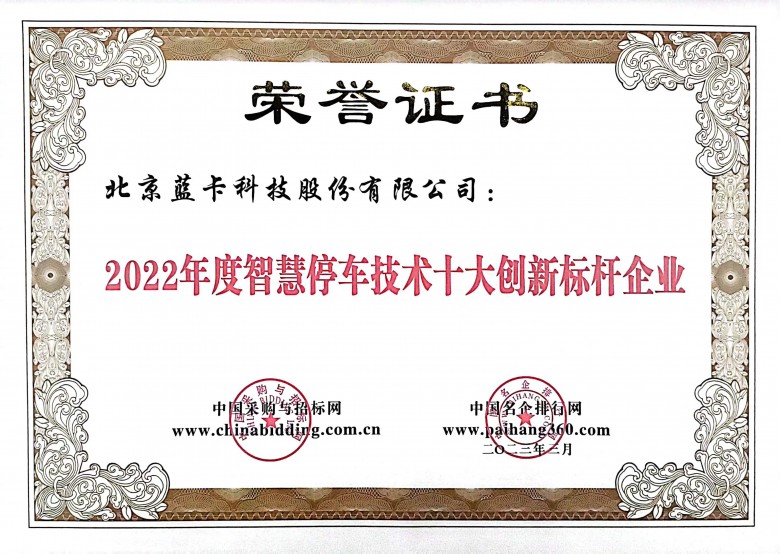 在“2023第九屆城市停車設(shè)施招標(biāo)采購評價推介活動”中,北京藍(lán)卡科技股份有限公司(以下簡稱“藍(lán)卡科技”)榮獲“2022年度城市級智慧停車十大整體解決方案提供商”“2022年度城市級智慧停車平臺前五強(qiáng)”“2022年度智慧停車技術(shù)十大創(chuàng)新標(biāo)桿企業(yè)”“2022年度智慧停車系統(tǒng)十大領(lǐng)軍企業(yè)”等4項行業(yè)大獎。此次榮譽(yù)的獲得是對公司創(chuàng)新能力、服務(wù)能力、社會信譽(yù)等投標(biāo)綜合實力的高度認(rèn)可。