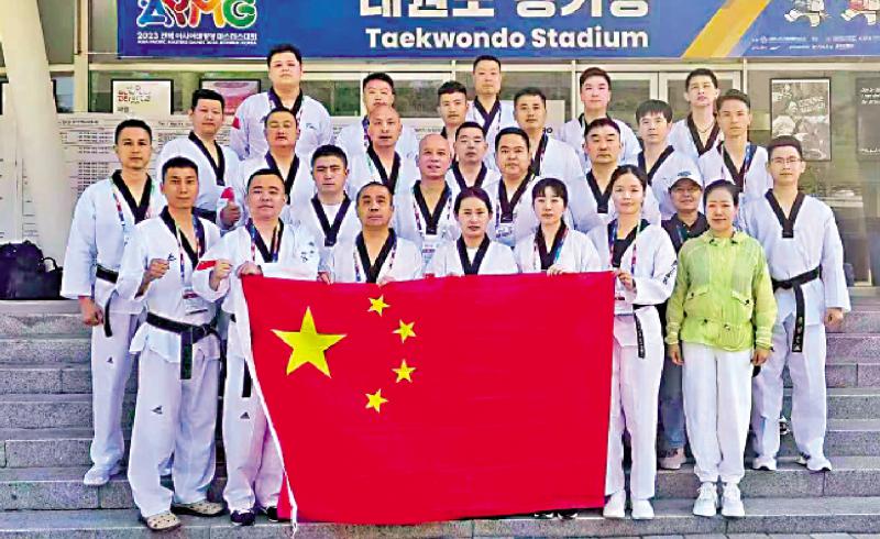 圖:李東憲與參加“2023亞太地區(qū)大師運動會”的兩岸選手合影留念。\受訪者供圖