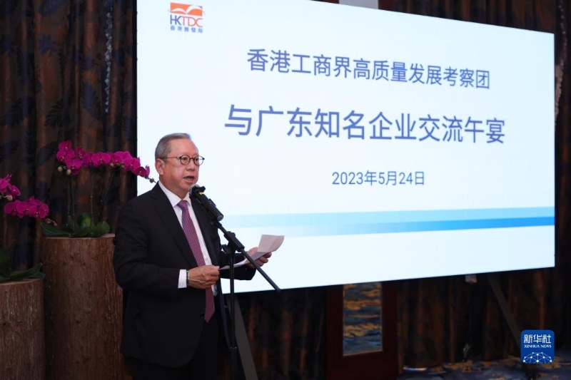 5月24日,香港貿易發(fā)展局主席林建岳在廣州市參加交流午宴時發(fā)言。新華社發(fā)