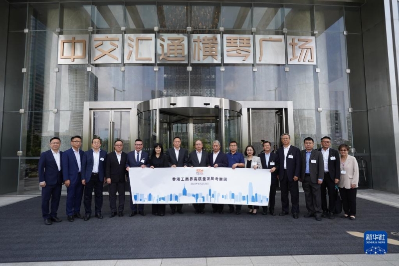 5月22日,考察團在珠海市中交匯通橫琴廣場前合影。新華社發(fā)