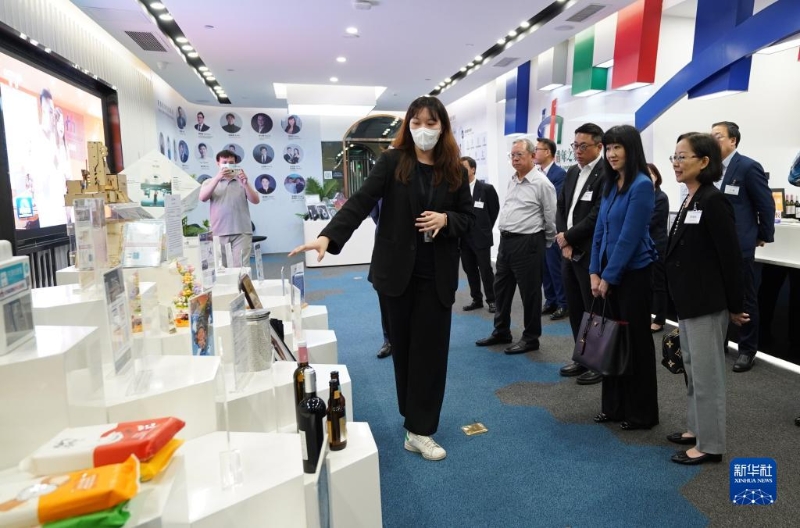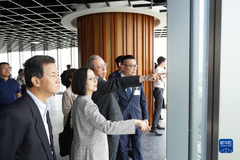 5月22日,考察團在珠海市中交匯通橫琴廣場參觀。新華社發(fā)