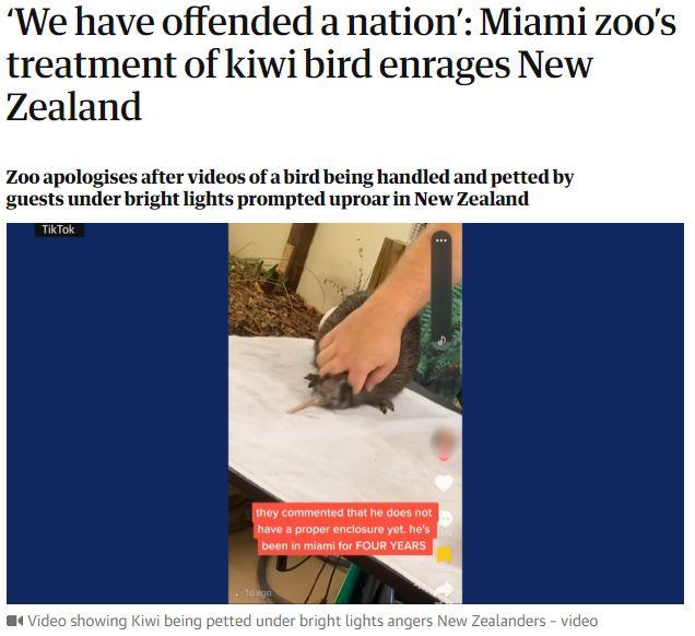 新西蘭總理希普金斯在24日的新聞發(fā)布會(huì)上,感謝邁阿密動(dòng)物園停止了這項(xiàng)互動(dòng)活動(dòng)?!八麄円呀?jīng)承認(rèn)他們做的事,對(duì)幾維鳥(niǎo)來(lái)說(shuō)是不合適的,或者是不正確的、不公平的。”