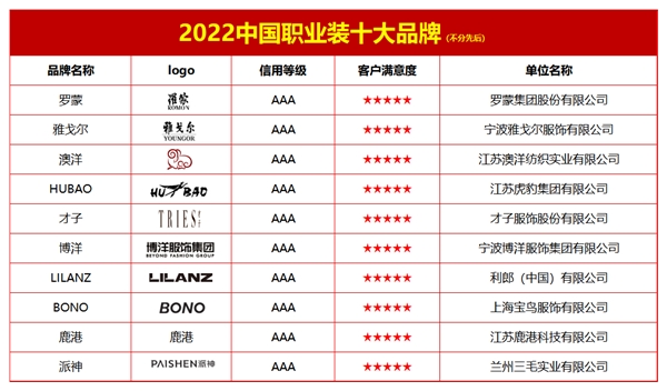 隨著時代的發(fā)展,職業(yè)裝不再只是簡單的制服,需求逐漸向“品質(zhì)、時尚、舒適、健康”方向轉(zhuǎn)變,需要體現(xiàn)單位企業(yè)、品牌的文化和特色,更要滿足個性化、定制化需求,從材質(zhì)的選擇到款式的設(shè)計,職業(yè)裝逐漸呈現(xiàn)出多樣化、工藝化、綠色環(huán)保等多重需求。職業(yè)裝招投標(biāo)市場發(fā)展迅速,市場規(guī)模不斷擴大,競爭日益激烈,職業(yè)裝品牌化發(fā)展成為企業(yè)贏得訂單和客戶信任的關(guān)鍵,品牌化發(fā)展可以幫助企業(yè)提升品質(zhì)和品牌形象,擴大市場份額,提高產(chǎn)品附加值,推動產(chǎn)品與服務(wù)升級,形成品牌認同和信賴,提高用戶對產(chǎn)品的價值認可度?!?022中國職業(yè)裝十大品牌”榜單權(quán)威發(fā)布旨為推動我國服裝行業(yè)高質(zhì)量可持續(xù)發(fā)展進程,促進更多服裝企業(yè)加強自主品牌建設(shè)和產(chǎn)品優(yōu)化,提升品牌在招投標(biāo)市場的知名度、美譽度和影響力,樹立“中國品牌”標(biāo)桿,發(fā)揮品牌引領(lǐng)帶動作用,為廣大招標(biāo)采購單位需求方、代理加盟商、經(jīng)銷商及社會各界提供重要驗證參考。具體如下:
