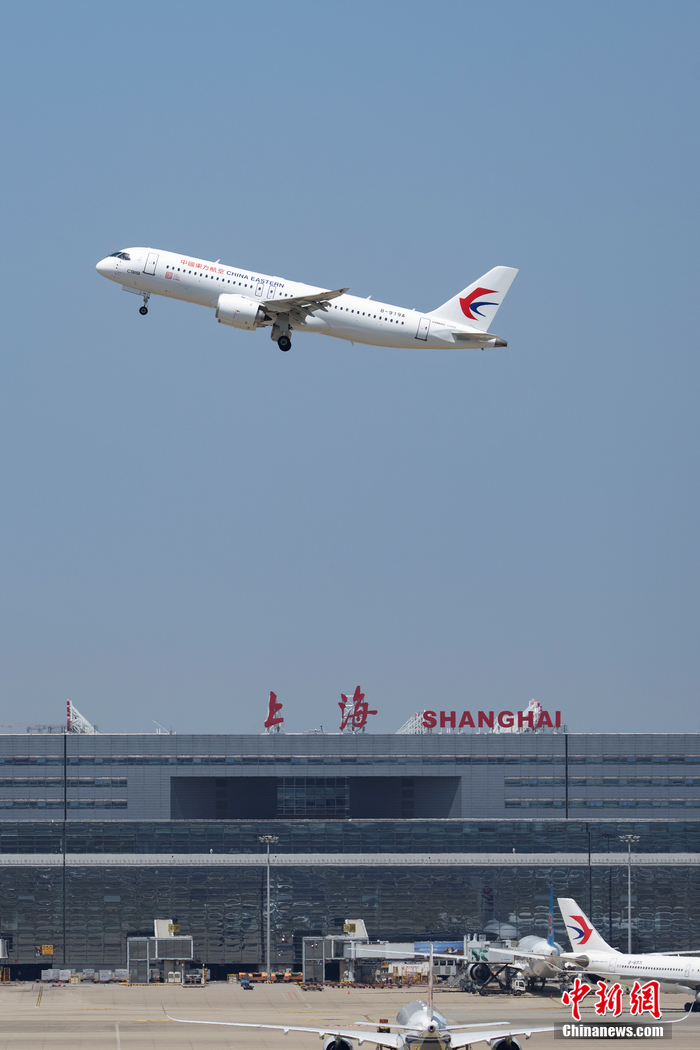 28日,C919大型客機(jī)執(zhí)飛的MU9191航班從上海虹橋機(jī)場(chǎng)起飛。東航供圖