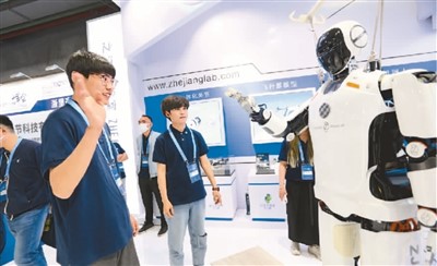 日前,以“機(jī)器智聯(lián)、賦能萬(wàn)物”為主題的第八屆中國(guó)機(jī)器人峰會(huì)暨智能經(jīng)濟(jì)人才峰會(huì)在浙江余姚開幕。展示涉及人工智能的最新行業(yè)應(yīng)用。圖為客商在展館展示最新型機(jī)器人。吳大慶攝(人民視覺(jué))