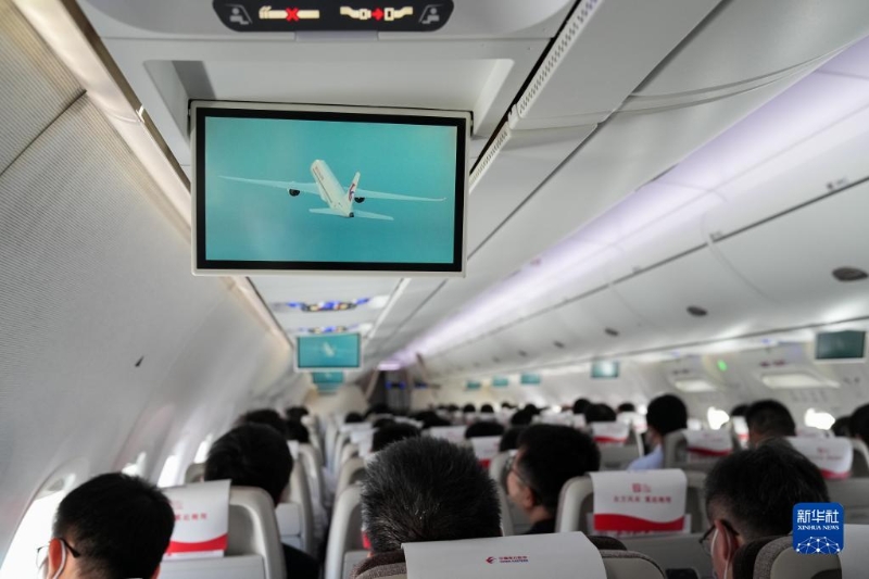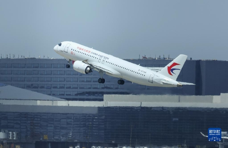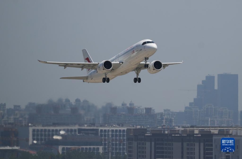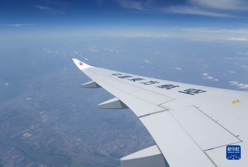 5月28日,C919首個商業(yè)航班東航MU9191在空中飛行。