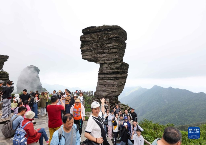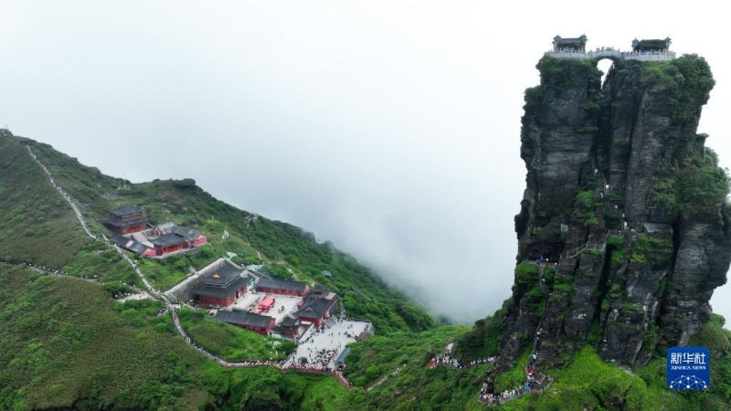 5月27日,游客在位于貴州省銅仁市的梵凈山景區(qū)游覽(無人機照片)。