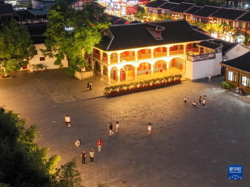 5月21日晚,游客在貴州省遵義會議會址參觀。從5月20日起,遵義會議會址重啟夜游模式。