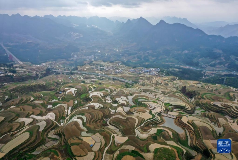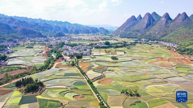 貴州省黔南布依族苗族自治州羅甸縣紅星村的田園景色(5月28日攝,無人機照片)。