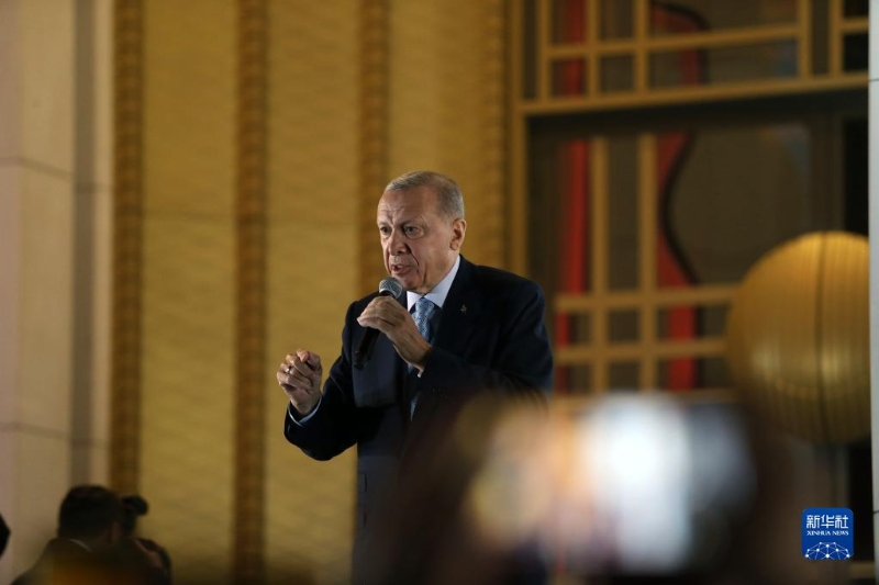 5月29日凌晨,土耳其總統(tǒng)埃爾多安在安卡拉發(fā)表講話。