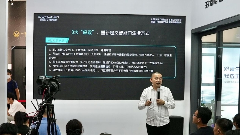本次發(fā)布會上,王力安防副總裁胡造奇向也眾人詳細解讀了第3代機器人安全門的獨有賣點。產(chǎn)品圍繞消費者需求痛點,打造了3大“極致”:極致便捷、極致安全、極致體驗,重新定義智能門生活方式。