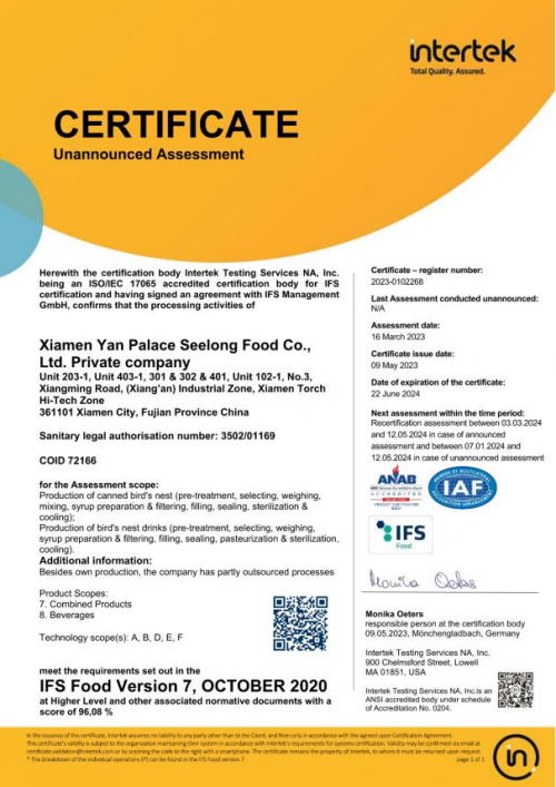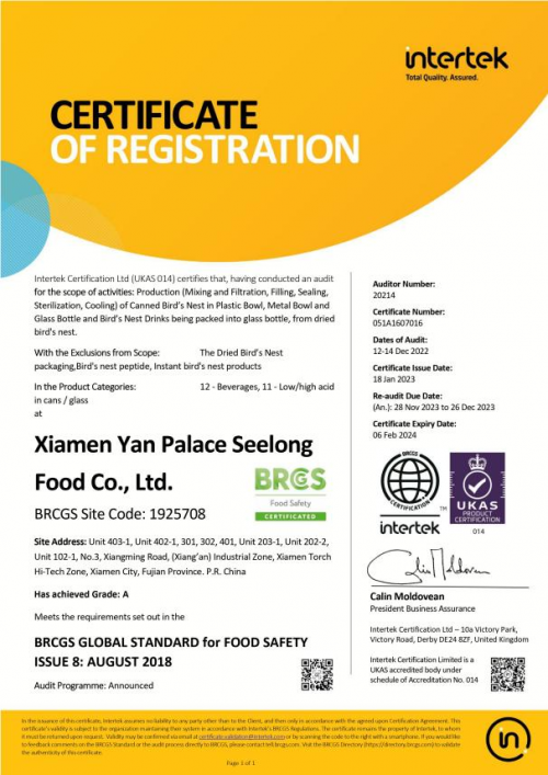 圖:燕之屋獲得BRC、IFS歐洲品質(zhì)雙認證