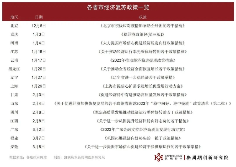 在這種背景下,多地政府自去年12月底起調(diào)整優(yōu)化防疫措施。同時,各地加力拼經(jīng)濟,如何搶抓機遇,推動地區(qū)經(jīng)濟快速穩(wěn)定發(fā)展,成為2023年第一季度時期內(nèi)各個地方政府都優(yōu)先思考解決的重點問題。