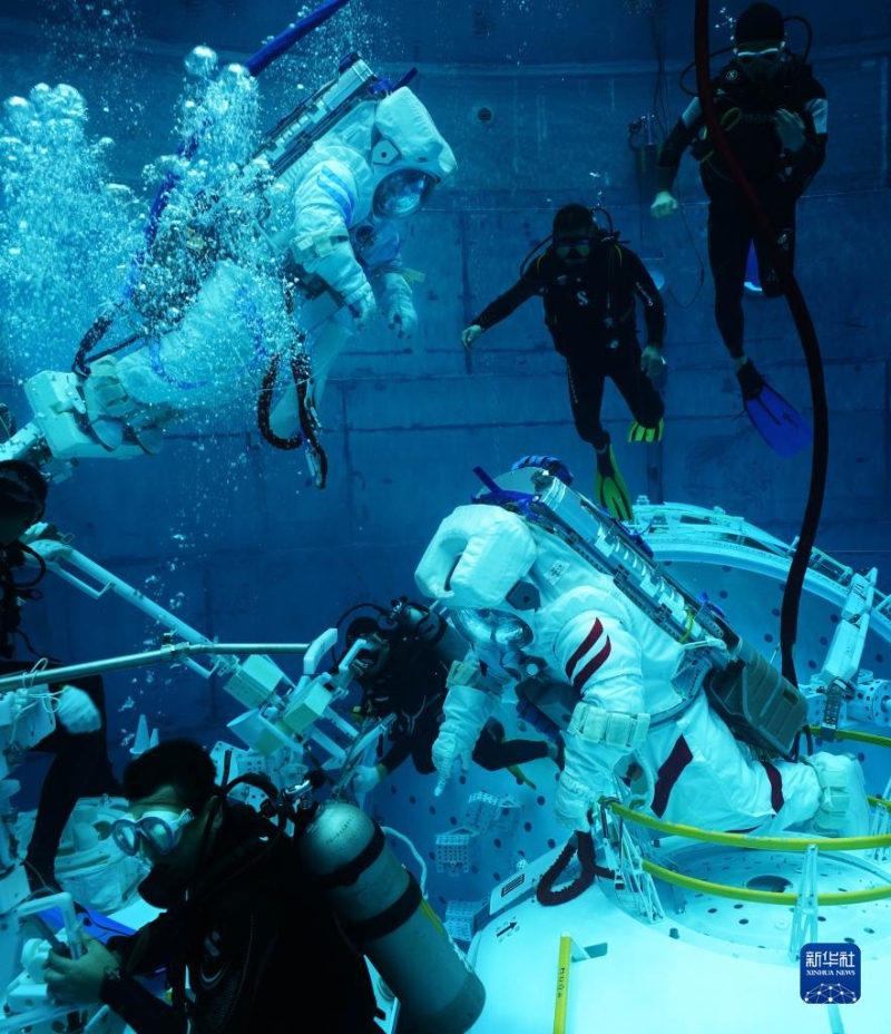 神舟十六號航天員在進(jìn)行水下訓(xùn)練(2022年9月14日攝)。新華社發(fā)(徐部 攝)