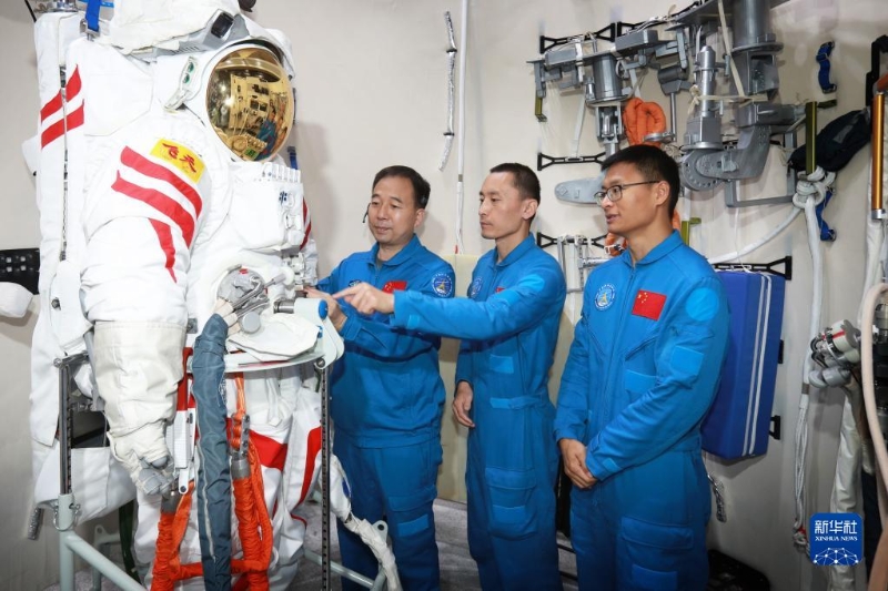 神舟十六號航天員乘組進(jìn)行航天服操作訓(xùn)練(2022年10月19日攝)。新華社發(fā)(徐部 攝)