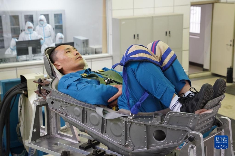 神舟十六號航天員朱楊柱在進(jìn)行超重耐力訓(xùn)練(2022年4月22日攝)。新華社發(fā)(王夏陽 攝)