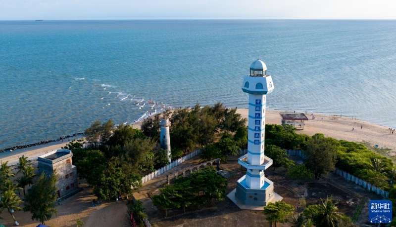 位于廣東省湛江市徐聞縣角尾鄉(xiāng)“南極村”拍攝的中國大陸最南端燈樓角(5月27日攝,無人機(jī)照片)。