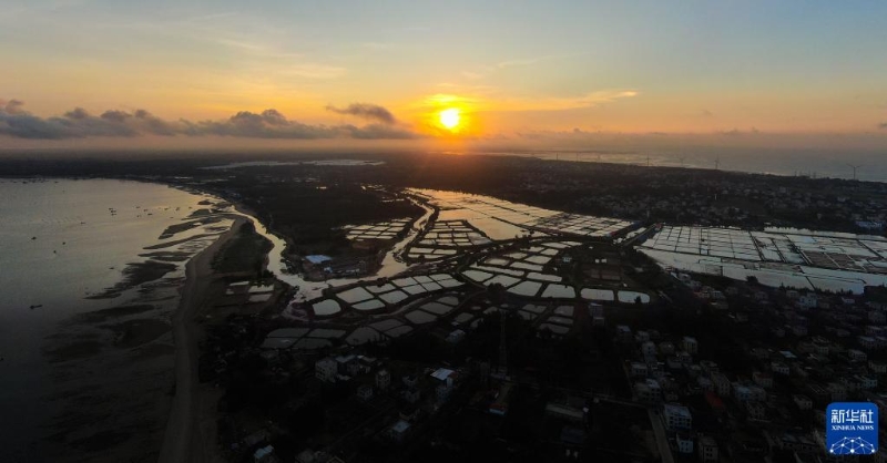 廣東省湛江市徐聞縣角尾鄉(xiāng)“南極村”日出美景(5月27日攝,無人機(jī)照片)?!澳蠘O村”地處我國大陸最南端,被瓊州海峽和北部灣所擁環(huán)。近年來,當(dāng)?shù)亓己玫淖匀画h(huán)境和濃郁的漁家風(fēng)情吸引了越來越多的游客。
