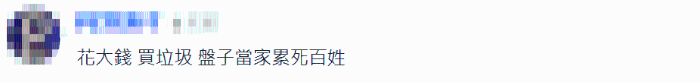 “老買人家要淘汰、關(guān)廠的東西?”“臺(tái)灣當(dāng)人家看門狗,還須自備經(jīng)費(fèi)買狗糧,而且限購快過期的狗糧!”臺(tái)灣網(wǎng)友也留言批評(píng),民進(jìn)黨當(dāng)局花大錢買美國(guó)過時(shí)武器累死臺(tái)灣百姓。