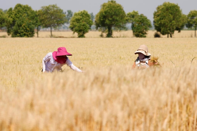 5月23日,農(nóng)民在江蘇省宿遷市泗洪縣龍集鎮(zhèn)勒東村麥田里除雜。新華社發(fā)(許昌亮 攝)